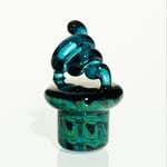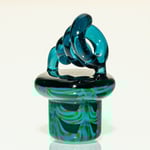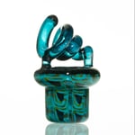 This KNW collab slurper top features a mounted spiral. It fits 20mm sizes, including Toro Slurper, Toro Vortex, and QCB Charm. The insert diameter measures just under 15mm. It will not fit the Control Tower. The piece includes Kyle's Kuroda tech with Green Dwarf and Opaque Aqua over Blue Stardust.