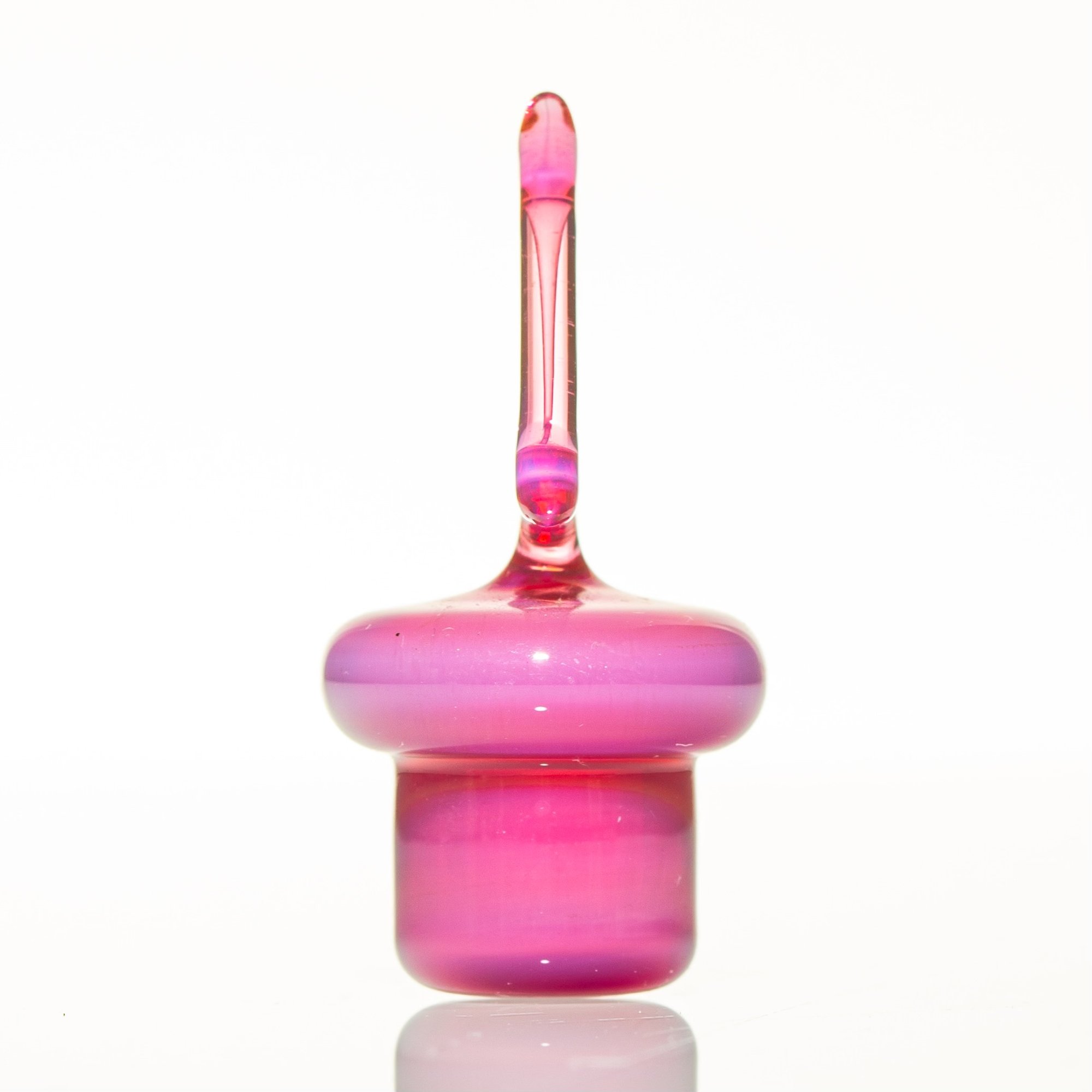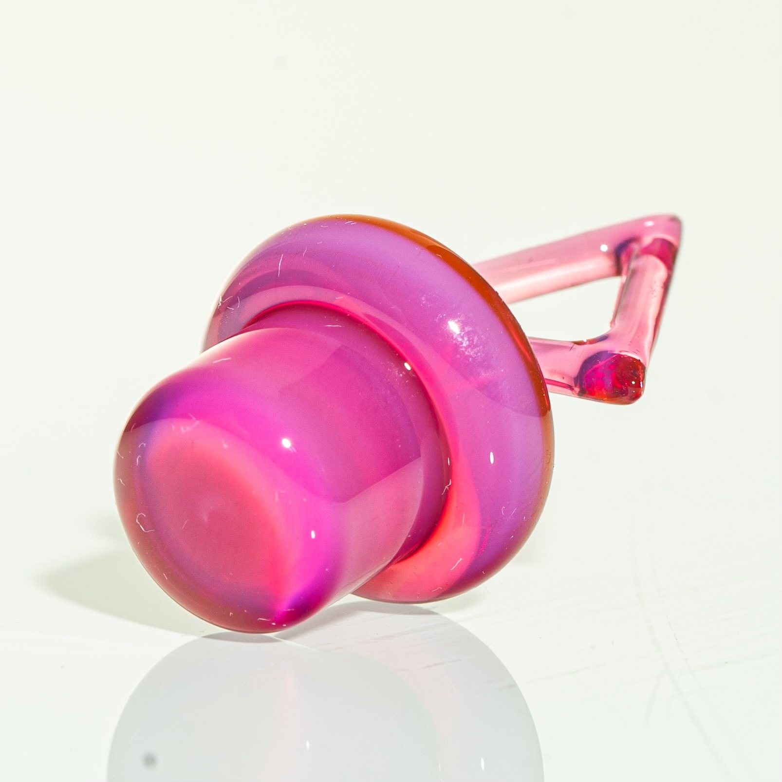 This Telemagenta slurper top with a mounted triangle fits 20mm sizes, including Toro Slurper, Toro Vortex, and QCB Charm. The insert diameter measures just under 15mm. It will not fit the Control Tower.